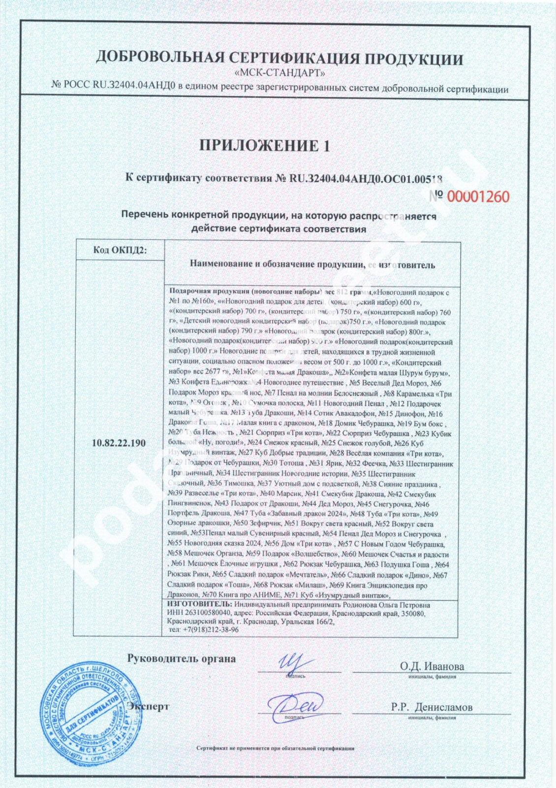 Составы подарочных наборов